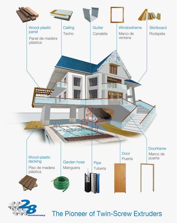 Параллельный двухшнековый экструдер был недавно разработан для своих технологий экструдирования труб из НПВХ за счет увеличения приводного крутящего момента и инновационных решений проблем политизации, терморегуляции шнека с помощью саморегулирующейся герметичной системы водяного охлаждения, системы вакуумной очистки и контроля давления расплава.