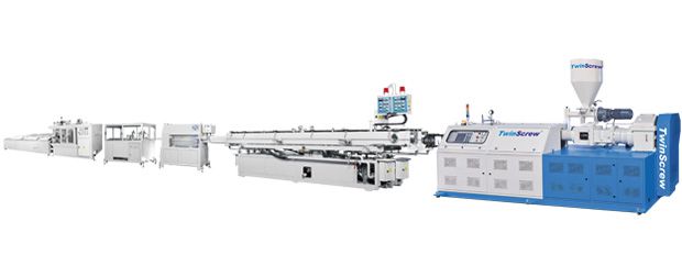 The Parallel twin screw extruder has newly developed for its technologies in UPVC pipe extruded by increasing in the drive torques and innovative solutions to problems in politicizing, screw thermoregulation by self-regulating, sealed water cooling system, vacuum scavenging system and melt pressure control.