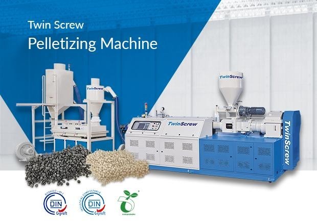 Due to the heavy use of fossil fuel for generating electricity power, the products made in Taiwan exhibit high carbon footprint. To reduce carbon emission achieving sustainable development, an effective solution is to use regenerable materials exhibiting the capacity of carbon sequestration such as starch and cellulose. In a report published by European Starch Industry Association (AAF), for synthesizing one ton of dry starch in the biogenic crops will uptake about 1.5tons of CO2 from the air. The supplier will gain 0.75ton carbon credit if a product contains 50% of starch that may compromise an equivalent carbon emission in in the supply chain.Therefore, we have received plenty of inquiries intending to make starch or cellulose (plant fibers)-based polyolefin or biodegradable composites by use of TwinScrew’s extruders.